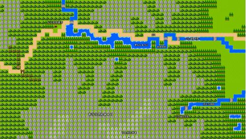 『金山町 真室川町 鮭川村』のRPG風イラストマップです。