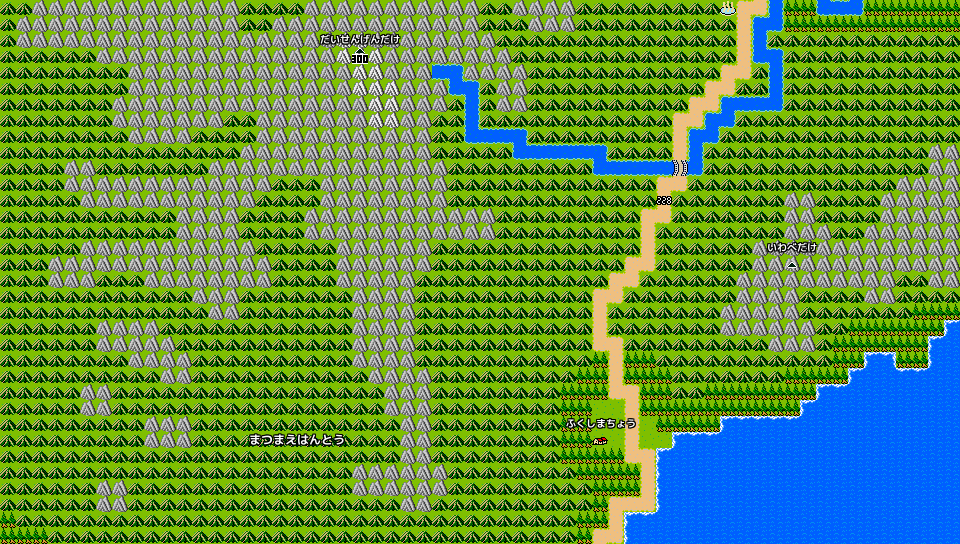 2022-05-30 福島町 014北海道 道南 イラストマップを歩くプログラムを起動します。初回の起動は30秒くらいかかります。 拡大したマップを表示します。初回の起動は30秒くらいかかります。 ■町 福島町(ふくしまちょう) ■半島 松前半島(まつまえはんとう) ■山 大千軒岳(だいせんげんだけ) 岩部岳(いわべだけ) ■温泉 知内温泉(しりうちおんせん) ※1マップサイズ おおよそ 横:30km 縦:17km ※2イラストサイズ 横:960ピクセル 縦:544ピクセル ※3マップチップについて ※4イラストマップやプログラムの利用について ※5イラストマップを歩くプログラムの操作について Lot. 30054031