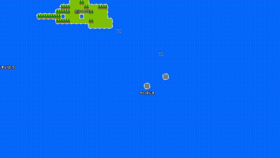 2021-09-15 歯舞群島 イラストマップを歩くプログラムを起動します。初回の起動は30秒くらいかかります。 拡大したマップを表示します。初回の起動は30秒くらいかかります。 ■海 多楽水道(たらくすいどう) ■島 多楽島(たらくとう) 海馬島(かいばじま) ※1マップサイズ おおよそ 横:30km 縦:17km ※2イラストサイズ 横:960ピクセル 縦:544ピクセル ※3マップチップについて ※4イラストマップやプログラムの利用について ※5イラストマップを歩くプログラムの操作について Lot. 30073016